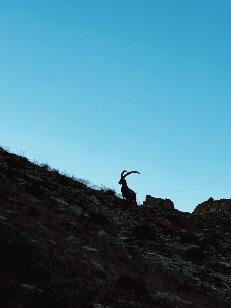 Com alguma sorte, poderemos avistar stambecchi — os majestosos cabritos-monteses dos Alpes — que habitam estas altitudes e nos lembram da vida selvagem que continua a pulsar neste território remoto.